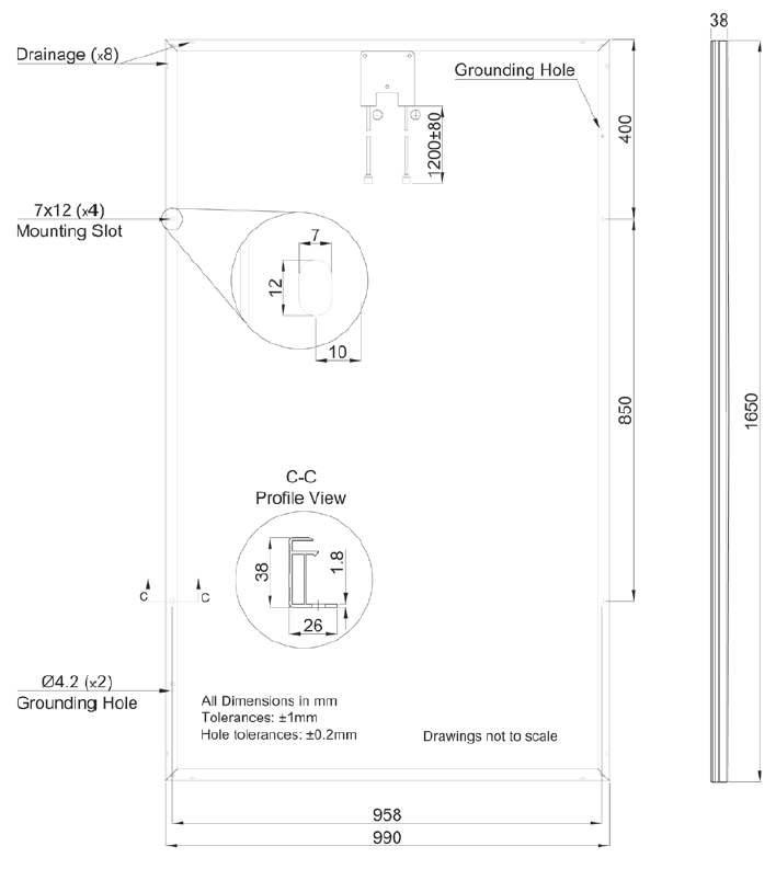 | Glass: | 3.2 mm High Transmittance, Tempered, Anti-reflective Coating |